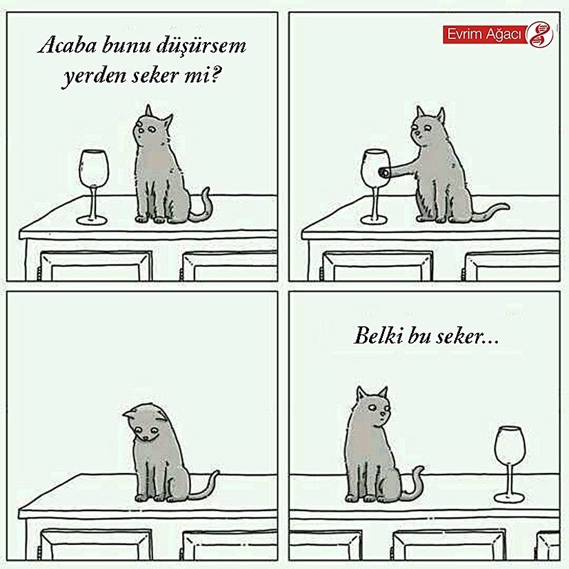 Bu karikatürde, kedilerin birçok durumda karşılaşılan genelleme yetisinin düşüklüğüne gönderme yapılmaktadır. Elbette ki, kedileri taparcasına sevenler için bu, onların umursamazlığından ve otoriteye başkaldırmışlıklarından kaynaklı yüce bir özelliktir. Ne var ki aslen bu davranış biçimleri, kedilerin pek de başarılı genelleyiciler olmayabileceklerini düşündürmektedir.