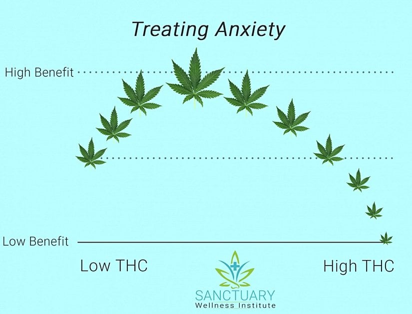 Anksiyete tedavisinde de kenevir kullanımı oldukça yaygın olmasına rağmen burada üzerinde durulması gereken şöyle bir nokta vardır: Kenevir, anksiyete üzerine iki yönlü ve iki fazlı bir etki göstermektedir. Yani bazı vakalarda anksiyeteyi rahatlatırken, bazı vakalarda tam tersine anksiyeteye neden olabilir. Burada doz çok önemlidir, düşük doz CBD ve THC anksiyeteyi azaltırken, özellikle yüksek doz THC'nin anksiyeteyi arttırdığı tespit edilmiştir. Sürekli yüksek doz THC kullanan kişilerde kronik anksiyete bozukluğu meydana gelebilmekte veya başka psikiyatrik bozuklukları varsa bunlar kötüleşebilmektedir. Bu gibi riskler nedeniyle anksiyete bozukluğu olan hastalarda en iyi tedavinin CBD ile yapılacağı belirtilmiştir.[21], [22]