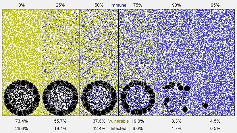 Bu noktaya aşılarla ulaşırsak, kayıplarımız dikkate değer miktarda (milyonlarca!) düşük olacak. Eğer virüsün doğal yayılımına izin vermek yoluyla yapacak olursak, milyonlarca kişiyi bu süreçte kaybedeceğiz.