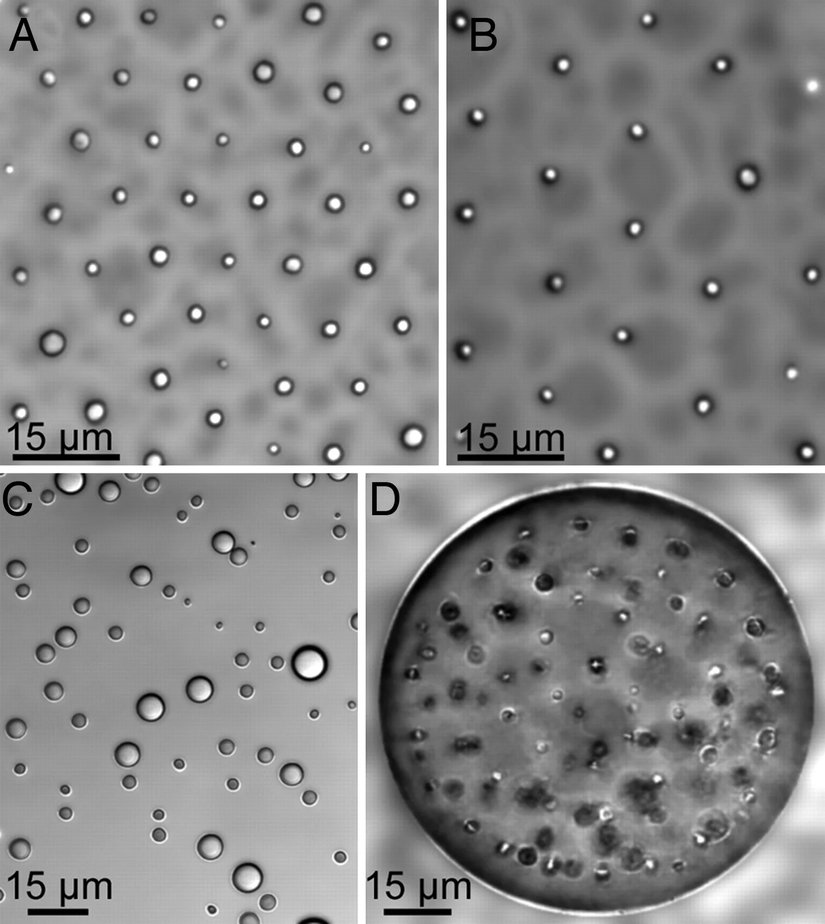 Aşağıda, laboratuvar ortamında üretilen koaservatların yapısını mikroskop altında görmekteyiz: