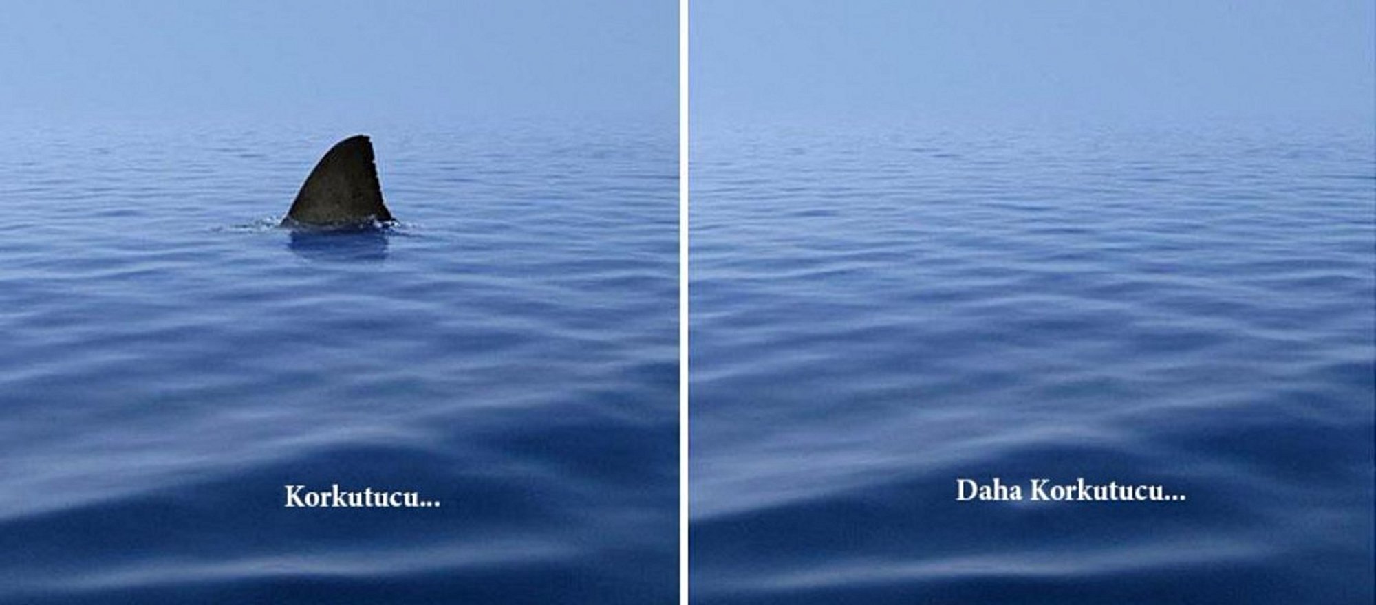 WWF'den harika bir reklam afişi... Tarihte en yoğun köpek balığı saldırılarının olduğu dönemde bile yılda 100'den fazla saldırıya ulaşılmamıştır ki günümüzde bu oran yılda 6-12 arasında değişmektedir. Yine en yoğun saldırıların olduğu dönemlerde bile ölümlü saldırı ortalamaları 25 dolaylarında kalmıştır.