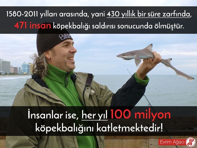 1580 ila 2011 yılları arasında (son 430 yılda) 471 insanın köpekbalığı saldırısı sonucu öldüğü kaydedildi. Buna karşılık, insanlar her yıl 100.000.000 köpekbalığını katlediyor! Evet, 100 milyon! Sayılar kulağa inanılmaz geliyor, "Her sene 100 milyon köpekbalığı öldürüyorsak, okyanusta kaç köpekbalığı var ve soyları nasıl tükenmedi?" diye soruyor olabilirsiniz. Biliyoruz, çünkü bizim de bu sayıları güvenilir kaynaklarla doğruladığımızda ağzımız açık kaldı.