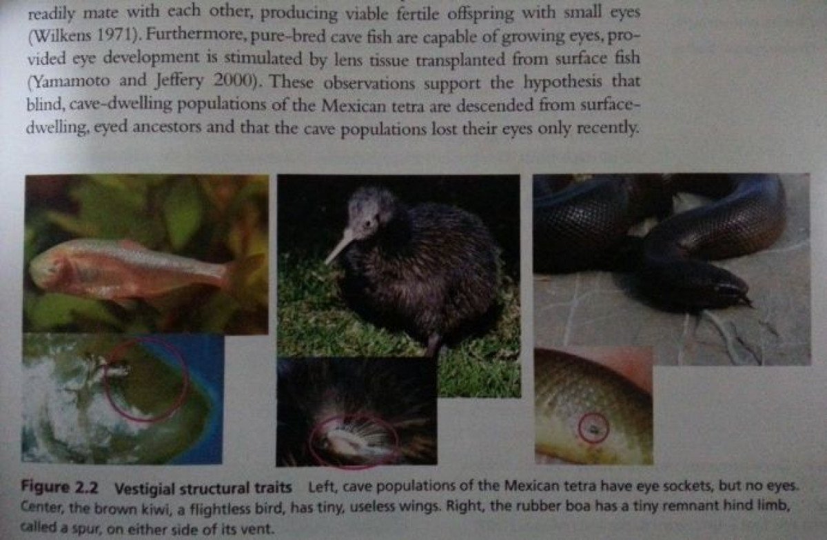 - Astyanax mexicanus türü mağara balığı, gözleri gelişmemiş körelmiş organ örneği olup, karanlık ortamda gözlere ihtiyaç duymadığı için evrimleşmiştir.