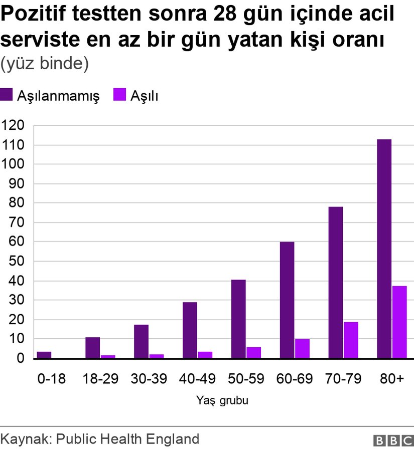 Bu yayında ölüm oranlarına bakıldığında iki doz aşılı kişilerin aşılanmamış kişilere göre ölüm riskinin 5-10 kat daha az olduğunu, hastaneye yatma oranının da aynı şekilde azaldığını görüyoruz.
