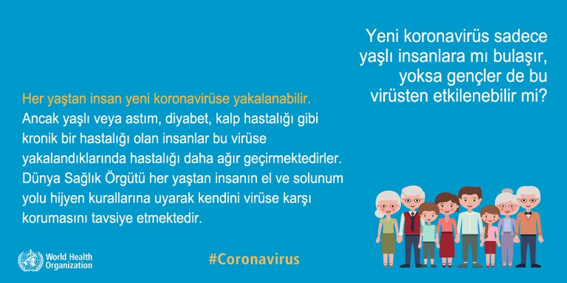 Dünya Sağlık Örgütü, koronavirüs hakkında çok sayıda önemli bilgi vermektedir. Bunları dilimize kazandırmanın faydalı olacağını düşünüyoruz.