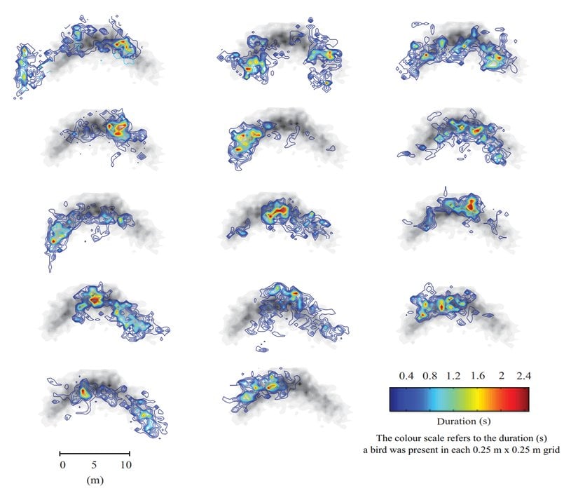 Görünüşe göre kuşlar, sürüdeki diğer kuşların nerede olduklarının çok farkında ve kendilerini olabilecek en iyi pozisyona konumluyorlar.