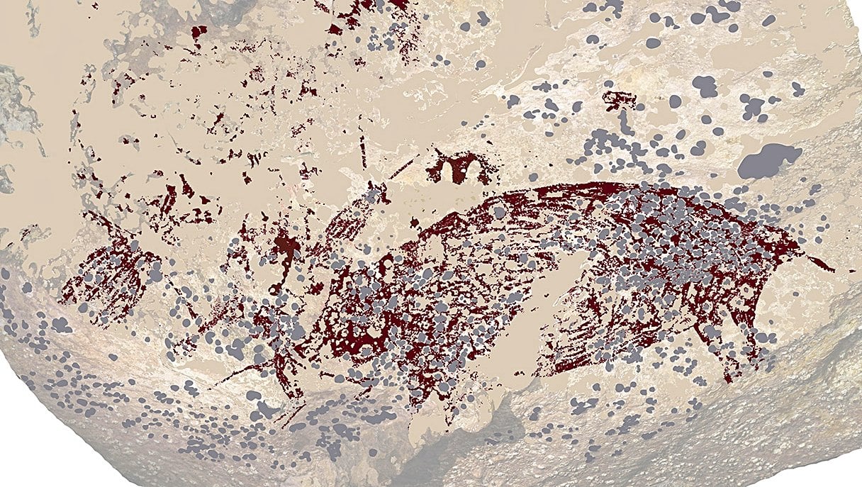 50.000 yıldan daha uzun bir süre önce Sulawesi adasındaki yemyeşil vadilerde yaşayan insanlar, yaşadıkları yerlerin yukarısındaki dar kireçtaşı mağaralara tırmanıyorlardı. Burada kendi yaşamlarından esinlenerek mor ve kırmızı tonlarda yarı insan-yarı hayvan figürleriyle domuz avı içeren fantastik sahneler resmettiler.