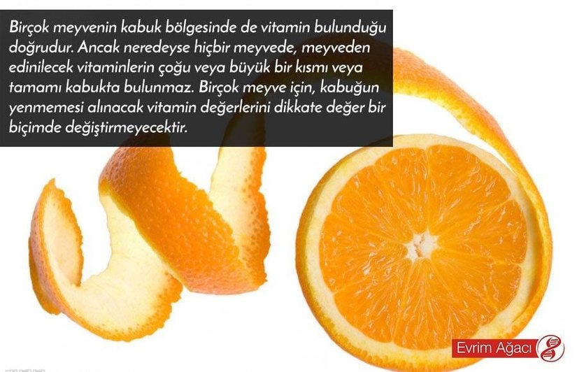 Bir meyvenin tüm vitamini kabuğunda yoğunlaşmıştır. Dolayısıyla kabukların yenmesi gerekir. Kabuklarıyla yemeyeceksen, hiç yeme daha iyi.