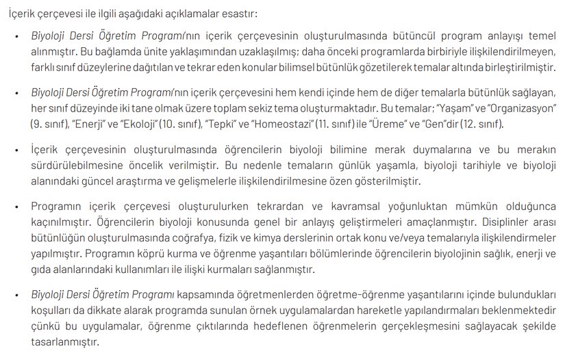 MEBBurada sıralananlar, ilk okuyuşta son derece makul, mantıklı ve eğitimi modernleştirme yönünde atılması elzem olan adımlardır. Örneğin biyoloji gibi bütünleşik ve üst düzey bir bilim dalında "ünite" mantığından çıkıp da birbirine bağlanan temalar üzerinden gitmek son derece doğrudur.