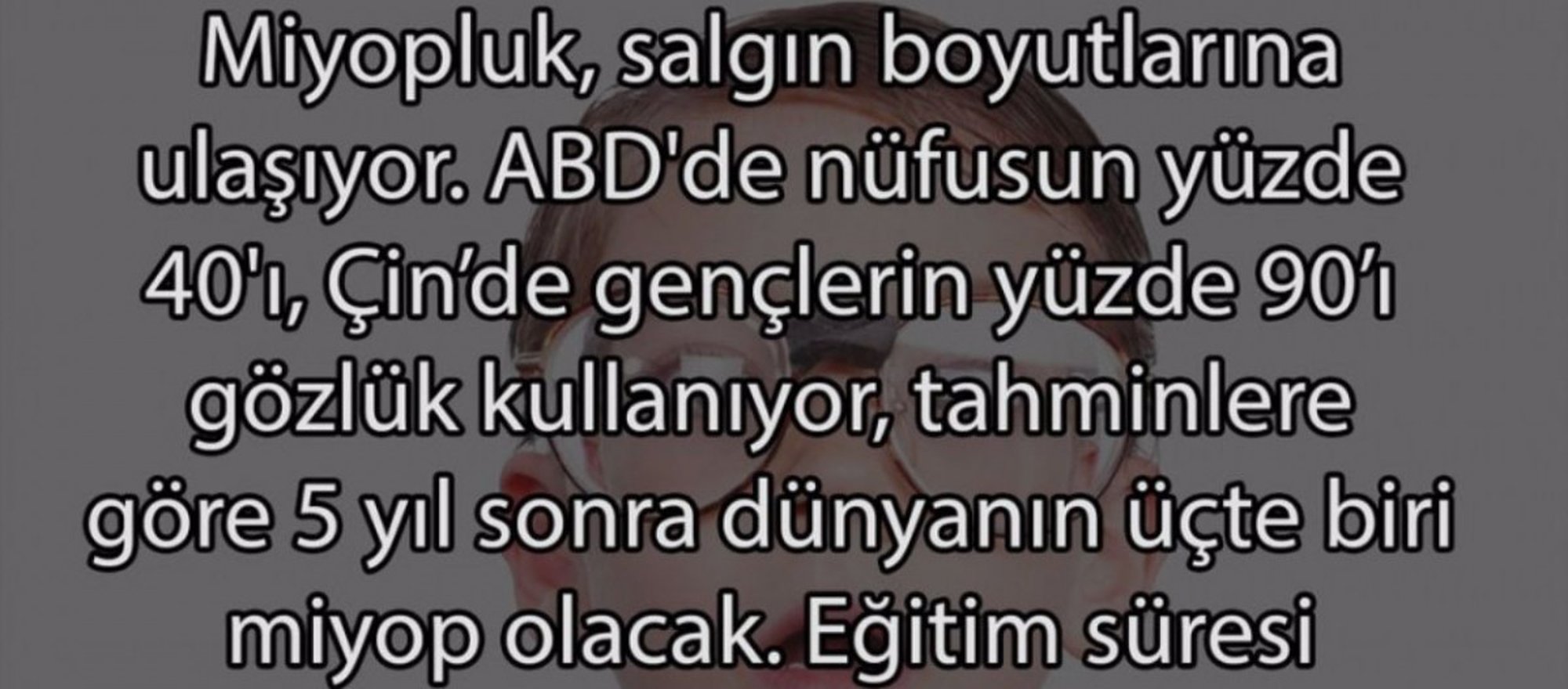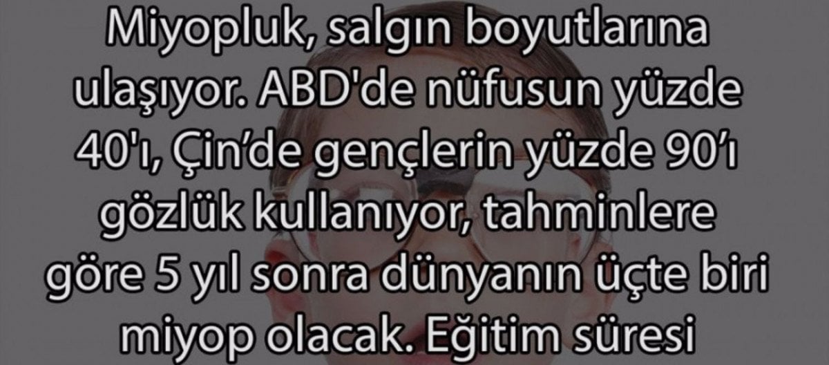 - Eğitim süresinin uzamasıyla birlikte miyopluk oranları da artmakta, gençler kapalı mekanlarda fazla zaman geçirerek göz sağlığını olumsuz etkilemektedir.