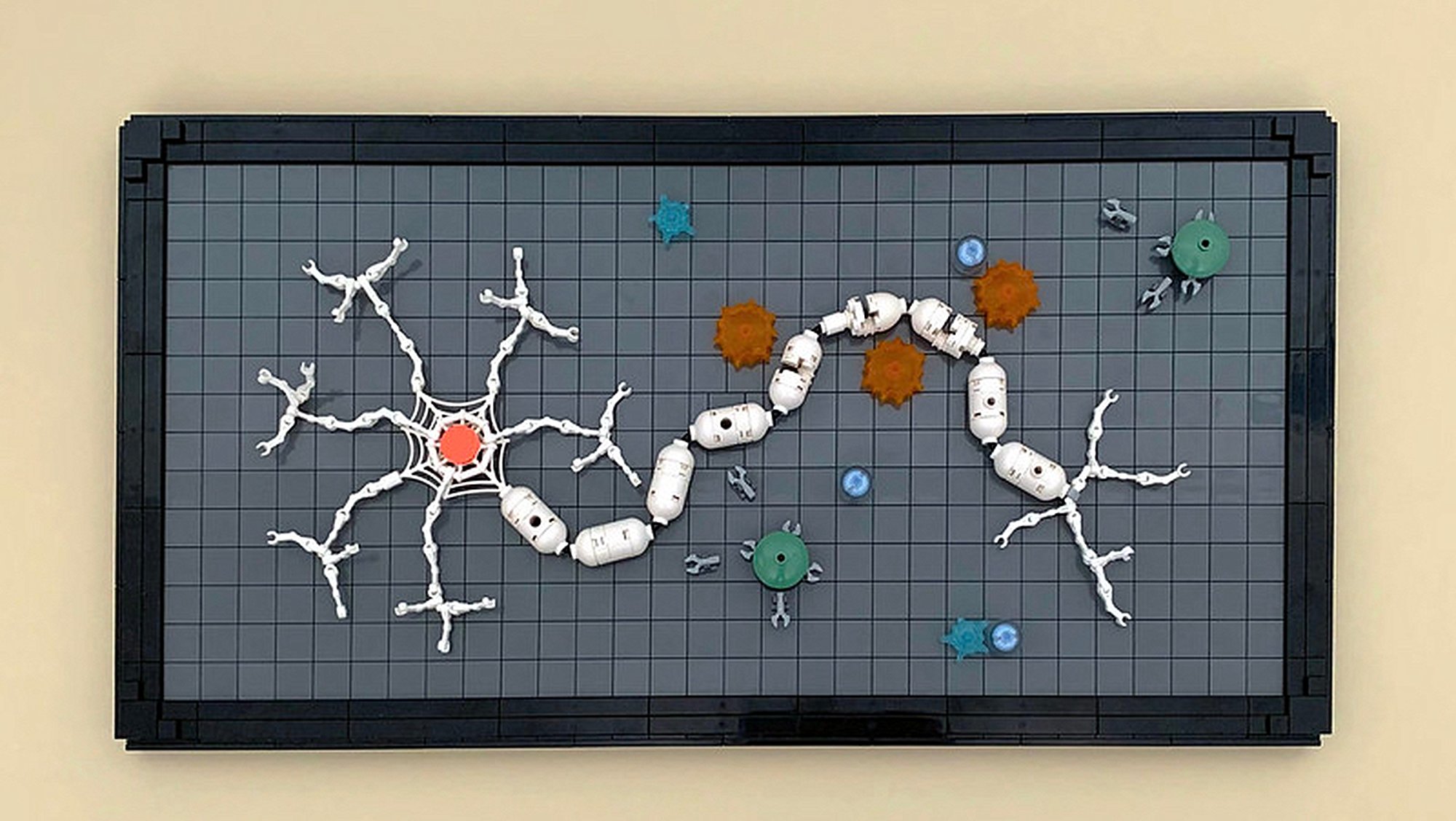 Sinir sisteminde bir devamlılık söz konusudur ve bu devamlılık iki komşu sinir hücresinin (nöronun) birbiriyle kurduğu etkileşim alanları (sinaps) ile oluşur. Bir nöron hücresinin gövdesi (soma) ve akson adı verilen kuyruklu bir iletim yapısı vardır. Gövdede dendrit adı verilen saçaksı yapılar bulunmaktadır. İstisnalar olmak kaydıyla genel olarak bir nörona bilgi, bir önceki nörondan sinapsa yayılan nörotransmitterler (endojen kimyasallar) aracılığıyla ulaşır ve nöron bu bilgiyi dendritleri ile algılayıp bir sonraki hücreye aksonları aracılığıyla taşır.