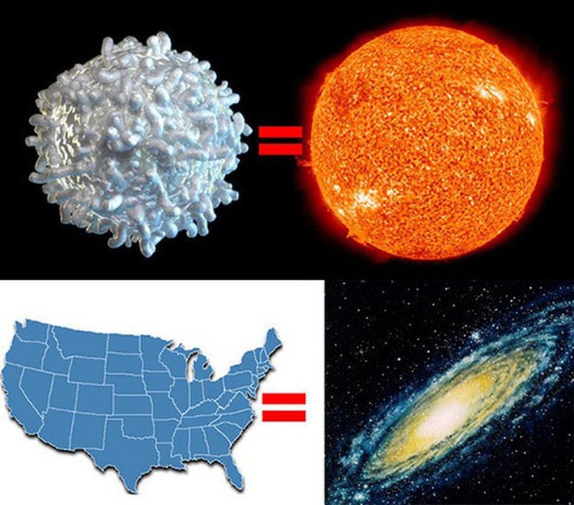 BaomoiAncak bunların hiçbiri, bir galaksi ile boy ölçüşemez. Eğer ki Güneş'i damarlarınızda her an dolaşmakta olan akyuvar hücrelerinden birinin boyutuna indirecek olsaydınız, Samanyolu Galaksisi ABD büyüklüğünde olurdu! Ki ABD, Türkiye'nin 12.5 katı yüz ölçümüne sahiptir!