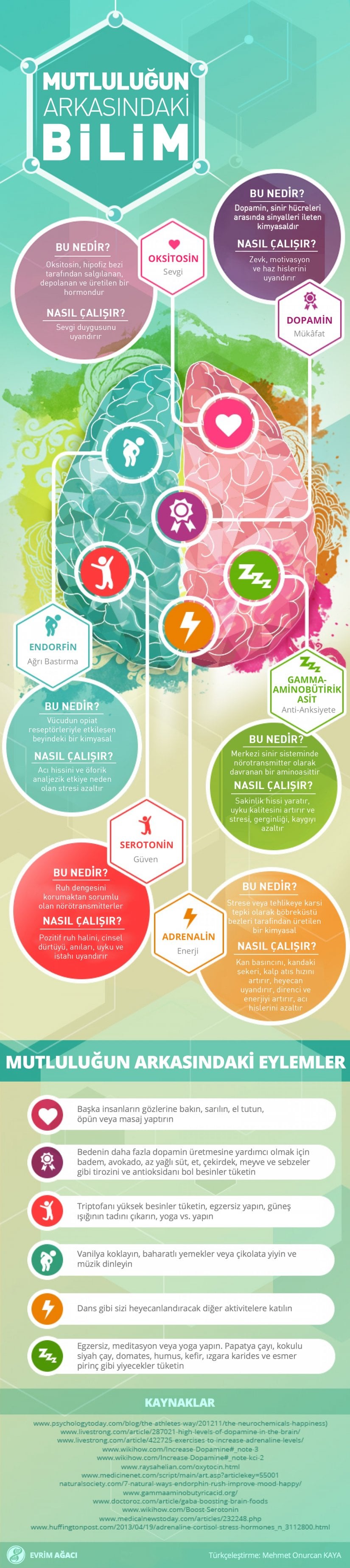 Peki nasıl mutlu oluyoruz? Hangi kimyasallar, nasıl bu hissi oluşturuyor? Beynimiz mutluluğu nasıl algılıyor? Bu görselde bu soruların en temel seviyede cevaplarını vereceğiz.