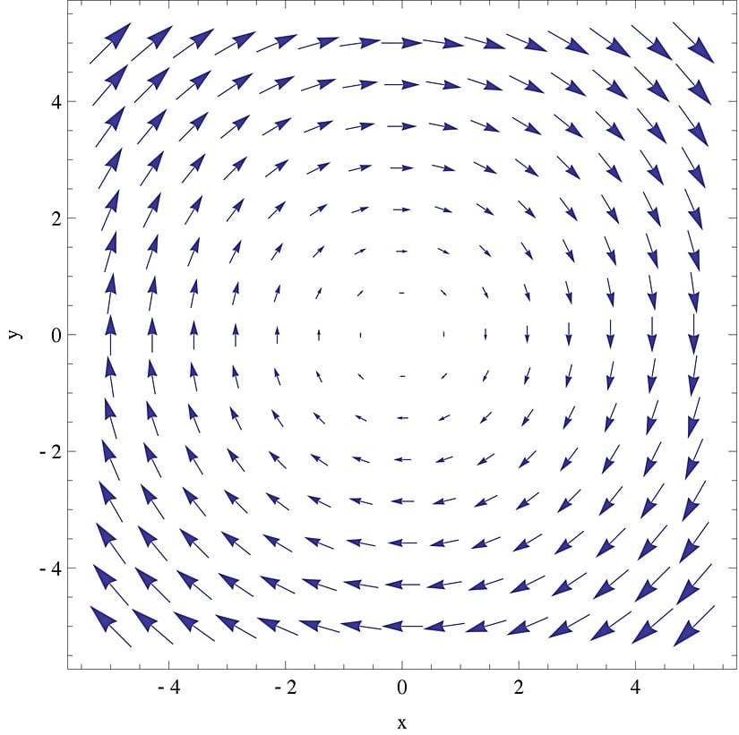 Görebileceğiniz gibi bu, diğer ikisinden biraz daha "büyük" bir işlemdir; ancak en nihayetinde yapılan son derece basittir: Alanımızı tanımlayan vektörün çeşitli yönlerde türevlerini alırız ve nihayetinde bir diğer vektör elde ederiz. "Bir vektörün rotasyoneli" adını verdiğimiz bu yeni vektör, bir vektör alanı içinde alınacak herhangi bir noktanın ne düzeyde ve ne yönde dönmeye zorlandığını bildirir.