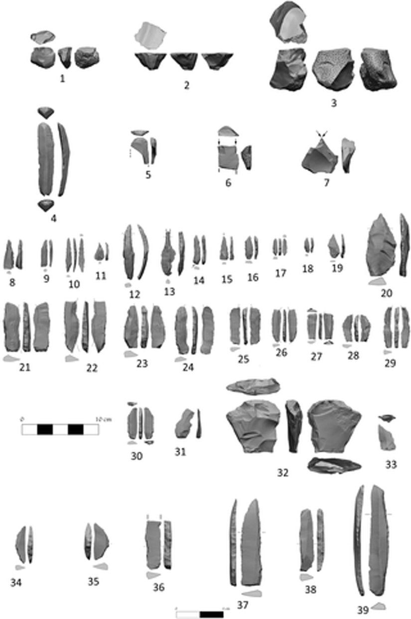 Taş aletler üzerinden NEG II’yi inceleyelim: Yukarıdaki görselde 4 ve 5 o dönemde kullanılan kazıcı aletler olarak karşımıza çıkıyor. Bundan yaklaşık 12 bin yıl önce NEG II’de yaşayan insanlar 6 ve 7’deki eşyaları oyma işleminde kullanıyorlarken; 8-20 arasındakileri delmek için, 21-29 arasındakileriyse bugünkü orağa benzer işlevi olan eşyalar olarak kullanıyorlardı.