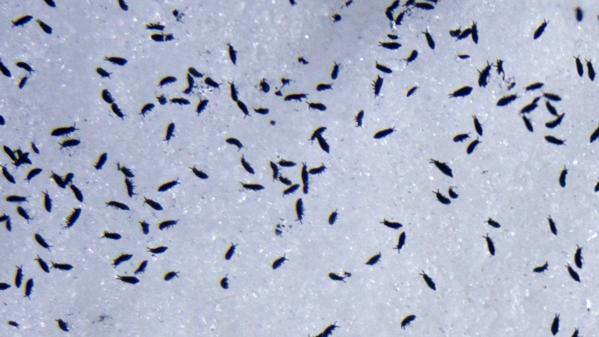 Onların sinek olmadığını anlamak için dipterolog (sinek bilimci) veya entomolog (böcek bilimci) olmaya gerek yok. Öyle ki görüntüdeki eklembacaklıların kanatları bile yok! Sıçrar kuyruklular (Collembola) adı verilen bu takım, İngilizce springtail ve bazı türleri snow flea diye geçiyor; ancak "flea" yani pire değiller. Vücut sıvılarındaki glisinden zengin proteinleri sayesinde buz kristallerini bağlayabiliyorlar ve donmaya karşı dayanıklılar. Bu yüzden diğer eklembacaklıların aksine karda topluca görülebiliyorlar. Çünkü eklembacaklıların hareket edebilmesi için kaslarını sıcak tutmaları lazım. Bunu da uçmak, beslenmek, güneşlenmek gibi yollarla yapıyorlar. Kısaca çeşit çeşit termoregülasyon yöntemleri ile. Buna benzer proteinler sayesinde organ naklinde dokuları soğuktan korumanın daha sağlam olabileceği ve daha kaliteli dondurma üretilebileceği düşünülüyor.