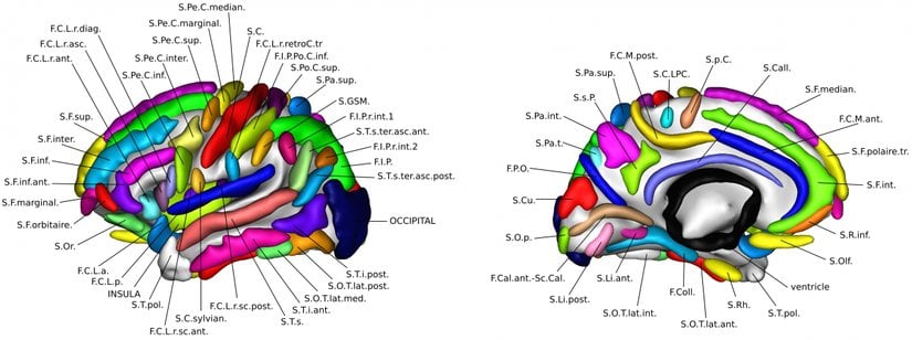 Çıplak gözle bakıldığında beyin yüzeyinin hiçbir alanı bir diğerinden aman aman farklı değildir. Ama etkinliği ölçtüğümüz zaman, sinir bölgelerinin her birinde farklı tür bilgilerin saklanmış olduğunu buluyoruz. Görmek için örneğin, renkleri, yüzleri, kenarları, hareketi işleyen farklı alanlar vardır. Bir yetişkinin beyni siyasi dünya haritası gibi bölüm bölüm ayrılmıştır.