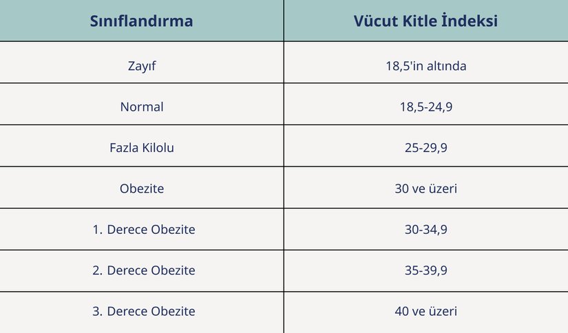 - VKİ 30 ila 35 arasıysa sınıf 1 obezite;