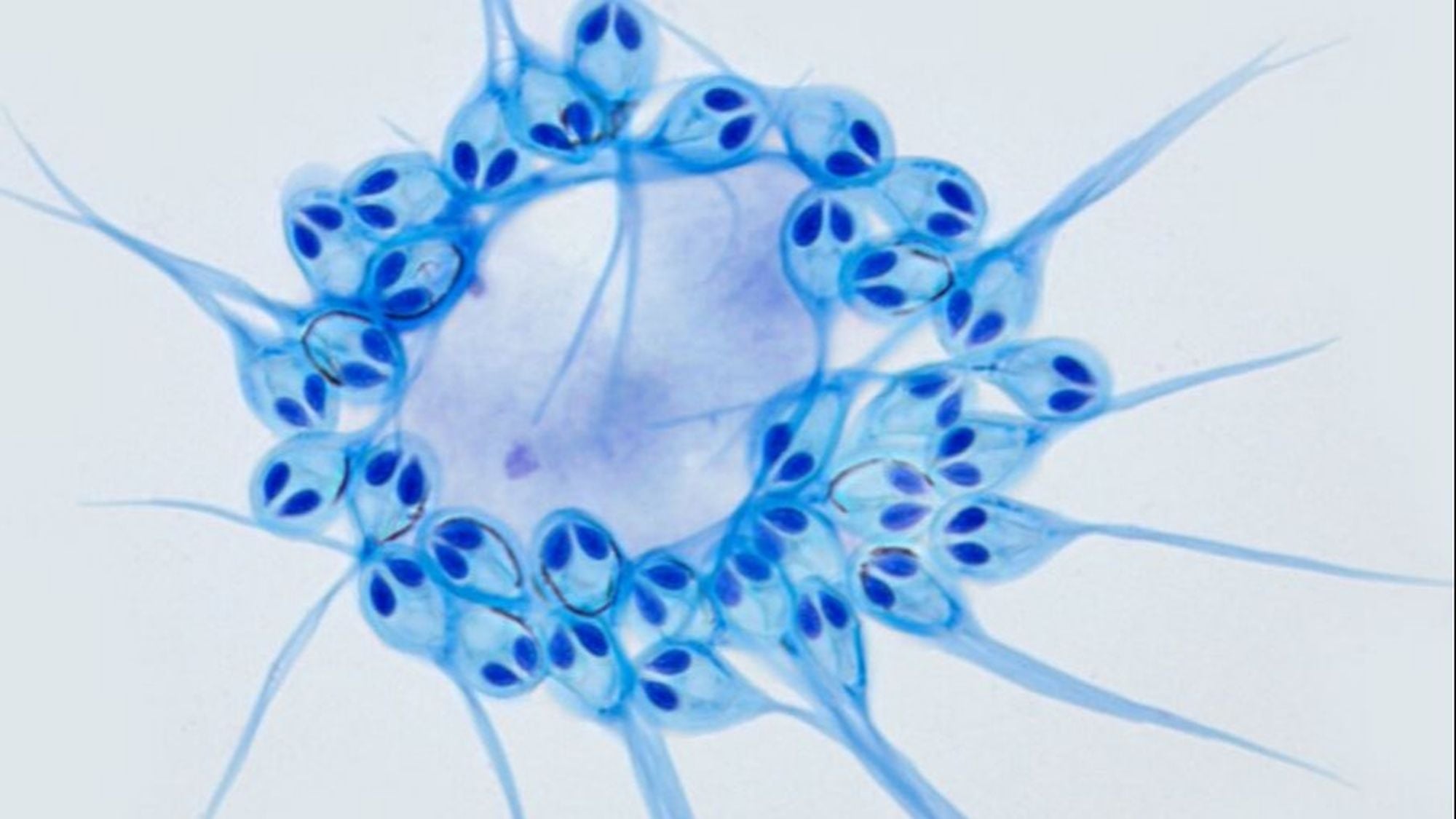 Denizanası ve hidroitlere yakın akraba olan bu ilginç hayvanın bilimsel adı Henneguya salminicola. Myxozoanlar karmaşık ve parazit bir sölenterler grubu ve biri bir balık diğeri ise halkalı solucan olmak üzere iki tane konağa ihtiyaç duyuyorlar. Henneguya salminicola örneğinde konakçı olan tür, adından da çıkarılabileceği gibi bir somon balığı; fakat ikinci konakçı henüz ortaya çıkarılmış değil. Bu parazitin nasıl bir yaşam sürdüğünü keşfetmek bilimsel bakımdan bir ilke imza atmış olsa da, ticari olarak da bir kazanç sağlayabilir; çünkü bu parazitler büyük somon çiftlikleri için büyük bir baş belası.
