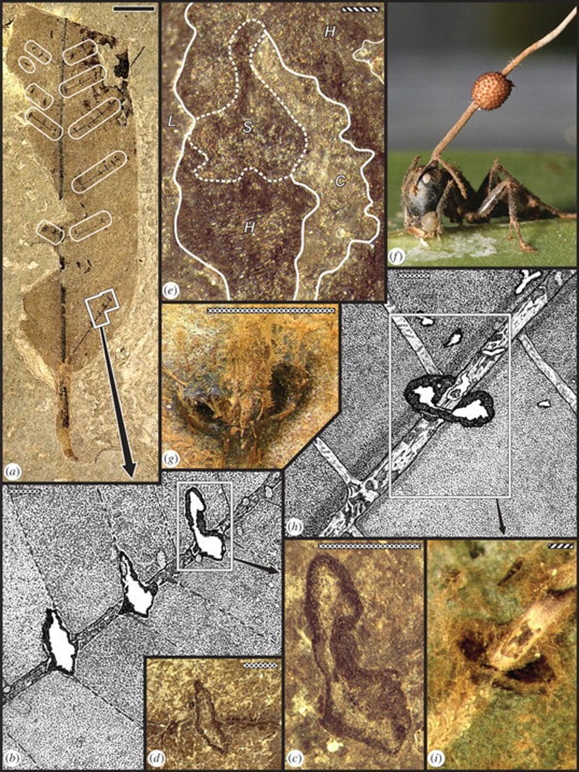 Böylesi bir davranışı fosillerden nasıl tespit ettiğimizi merak ediyor olabilirsiniz. Bunu yapabilmemizin sebebi, ölmek üzere bir ağacın gövdesine tırmanan karıncanın, tutunduğu noktada dambıl şeklinde izler bırakıyor olmasıdır. Aynı izlere Messel Çukuru'nda çıkarılan 48 milyon yıl öncesine ait fosillerde de rastlamaktayız ve bu nedenle bilim insanları söz konusu "beyin kontrolü" davranışının o zamanlarda da bulunuyor olabileceğini düşünüyor.