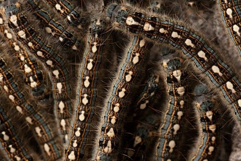 Bir örümceğin bacaklarına benzeyen bu fotoğraf, aslında çok sayıda Malacosoma disstri türü tırtıldan oluşan bir karedir. Çadır tırtılları olarak da bilinen bu canlılar, metamorfoz sonrası türün yetişkin hali olan Kuzey Amerika Güvesi'ne dönüşürler.
