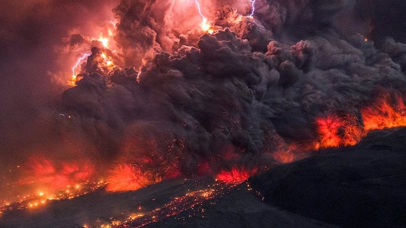 Her ne kadar ülkemizde daha nadir olsa da, Dünya genelinde volkanik faaliyet de yangınları tetikleyebilmektedir. Bir volkandan saçılan lavların sıcaklığı 800-1200 °C civarında olabilmektedir ve bu lavlar yakıt ile buluştuğunda, havadaki oksijenle tepkimeye girerek yangınları başlatabilmektedir. Ayrıca bir volkandan fırlayıp, kilometrelerce uzağa ulaşabilen kor küller de yangınları tetikleyebilmektedir. Örneğin 2021 yılnda Pacaya Volkanı'ndan saçılan lavlar, Guatemala'da orman yangınlarını başlatmıştır.[14]