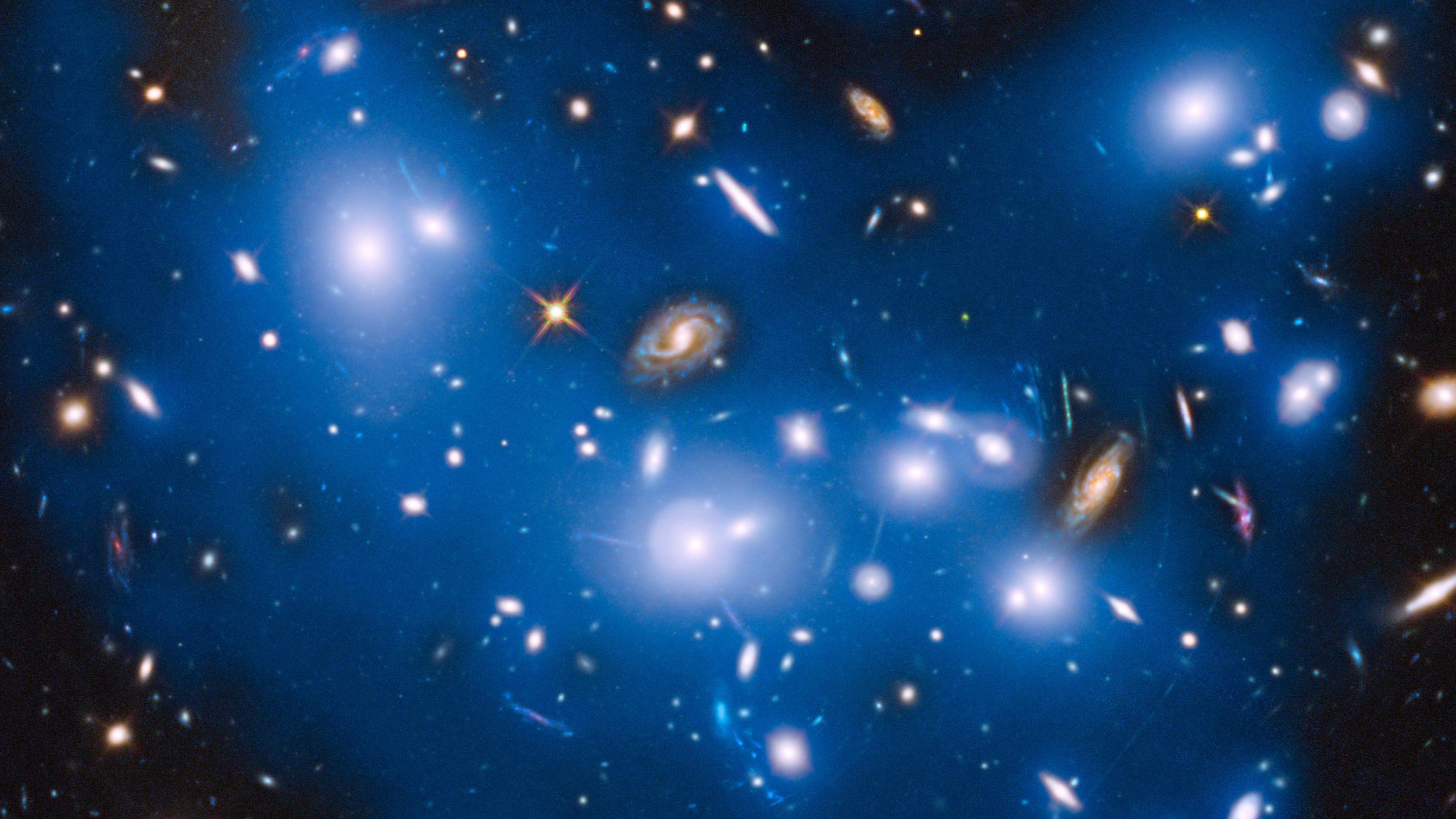 - Pandora Kümesi (Abell 2744) yaklaşık 4 milyar ışık yılı genişliğinde ve içinde 500'den fazla galaksi ile her birinde milyarlarca yıldız barındırır.