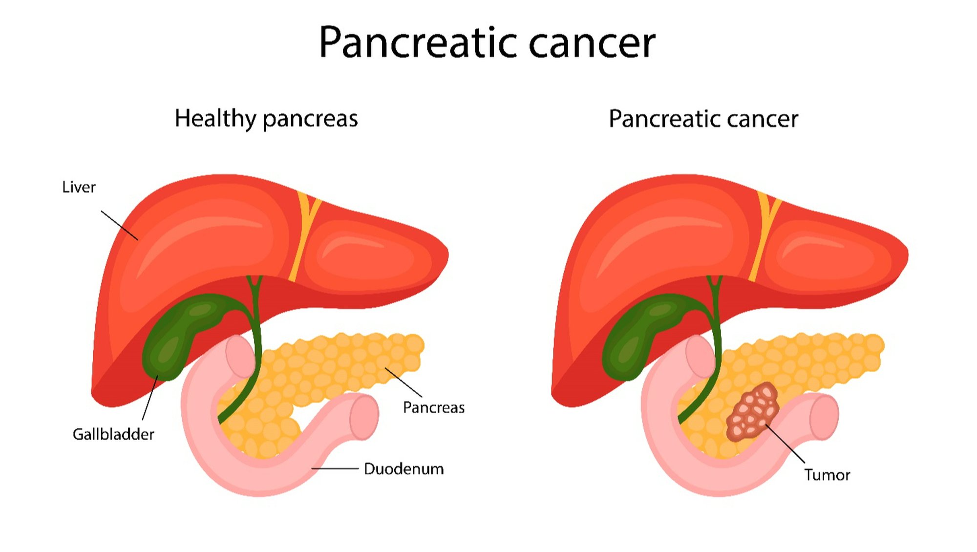 - Sarılık: Pankreasın başında gelişen bir tümör, safra kanalını tıkayarak gözlerde ve ciltte sararma, koyu renkli idrar, soluk ve yağlı dışkı gibi belirtilere yol açabilir.