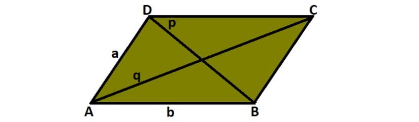 p=q=a2+b2+2abcosB^p=q=\sqrt{a^2+b^2+2ab\cos{\hat{B}}}
