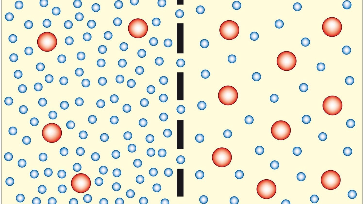 Difüzyonun prensibi, moleküllerin hareket etmesi ve eğer yapabilirlerse ortam boyunca eşit olarak yayılmalarıdır. Ancak, yalnızca zardan geçebilen malzeme zardan difüze olacaktır. Bu örnekte çözünen madde zardan geçemez, ancak su geçebilir. Su bu sistemde bir konsantrasyon gradyanına sahiptir. Bu nedenle, su konsantrasyon gradyanından aşağıya doğru difüze olacak ve zarı geçerek daha az konsantre olduğu tarafa geçecektir. Suyun zardan bu şekilde difüzyonu (osmoz) suyun konsantrasyon gradyanı sıfıra inene kadar devam edecektir. Osmoz canlı sistemlerde sürekli olarak devam eder.