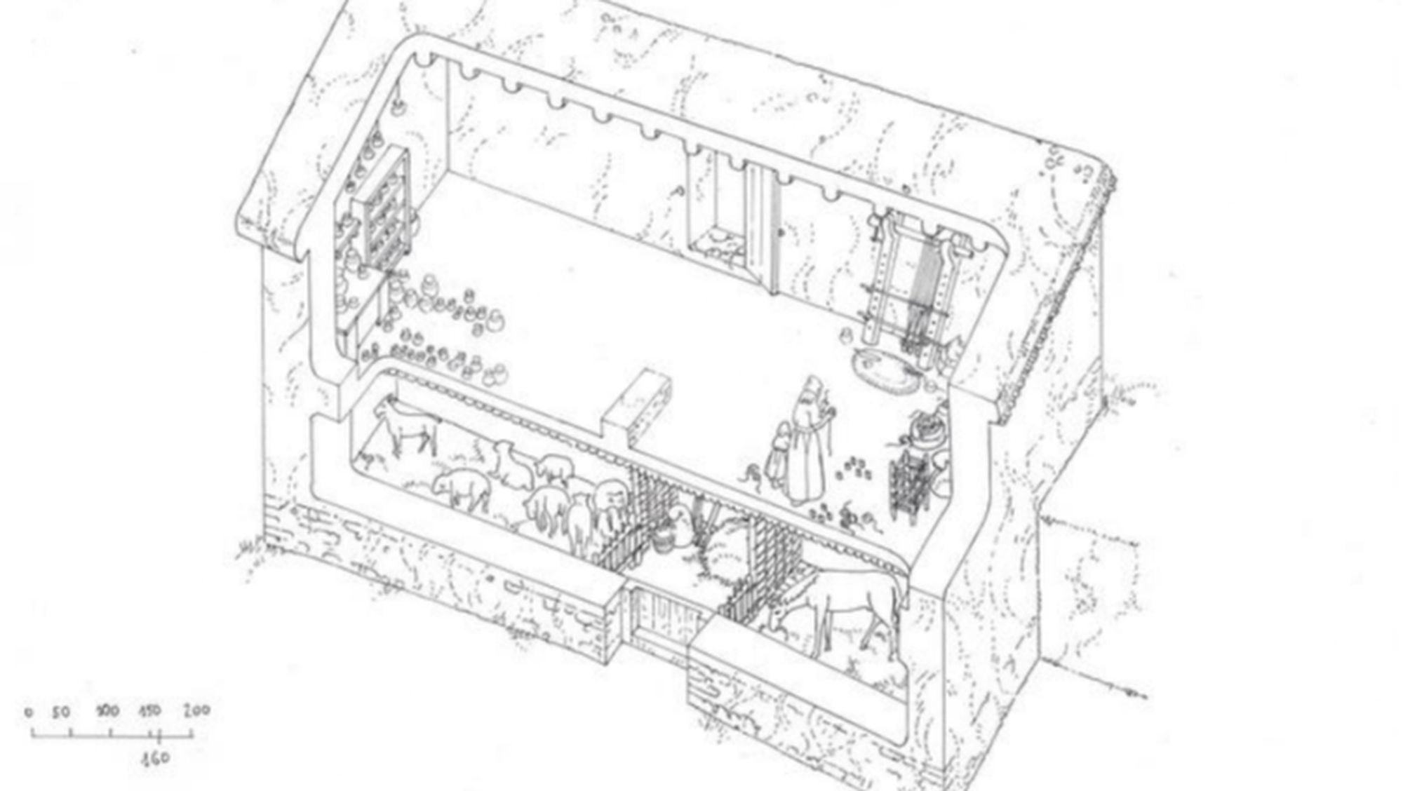 Üst katın yemek pişirme ve tekstil üretimi için bölümlere ayrıldığı anlaşılıyor. Üst katta bulunan çok sayıda ağırşak ve dokuma tezgahı ağırlığı, koyun ve keçiden elde edilen yünü eğirmek ve dokumak için kullanılmış olabilir. Arkeologlar ayrıca yulaf ve arpa gibi yenilebilir tahıllar ve içinde süt içildiği ve domuz yahnisi yendiğini gösteren kalıntılar bulunan bazı pişirme kapları buldu.