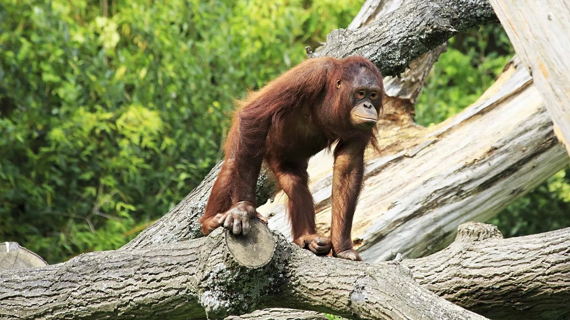 İri vücutlu hominoidler braşiyasyon hareketini gibonlardan daha az yapmaktadırlar. Onların bütün vücut ağırlığını tam olarak taşıyabilecek dallar çok nadir bir şekilde birbirlerine yakın konumlanabiliyor. Ayrıca, bu sarkaç hareketi daha iri primatlar için daha az etkilidir, nedeni ise kolları vücutlarını yaşımak için yeterli uzunlukta olmayabilir. Bunun yerine, ağaçlardayken, kuyruksuz iri maymunlar dalları el ve ayaklarının üç veya dördüyle birlikte tutmaktadırlar. Bu da daha küçük dallardan da destek almalarını kolaylaştırmaktadır. Bu tip hareket biçiminin ustaları ise orangutanlardır. Orangutanlar, ağaçlar arasında, her seferinde bir el veya ayakları ile yeni bir dalı tutarak hareket etmektedirler. Bu hareket biçimi, dört uzvun eşit bir şekilde kullanıldığında, quadrumanous (dört ellilik) olarak adlandırılır.