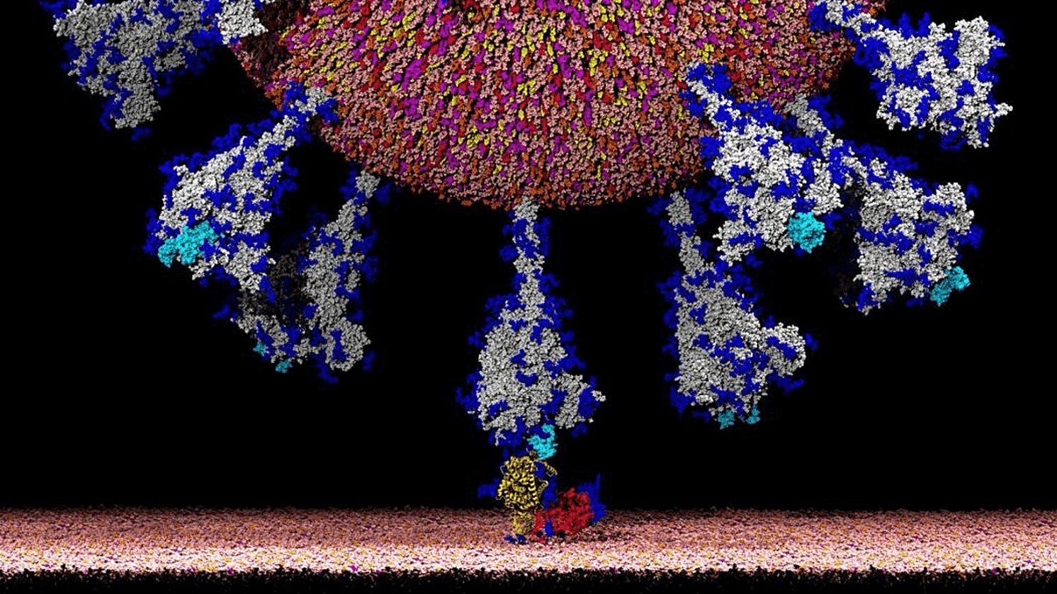Spike (Mızrak/Yüzey/Başak) proteinleri koronavirüslerde etkili bir enfeksiyon için başroldedir. Ortalama bir koronavirüste 74 adet bulunur ve trimer uzantıları virüsün taç görünümünde olmasını sağlar. Bu protein, evrimsel süreçte iyi korunmuş olan S1 ve S2 olmak üzere iki bölgeden oluşur. S1 bölgesi viral enfeksiyonun ilk aşamalarında, konak hücre yüzeyindeki reseptörlerle etkileşime girer. Bu bölge reseptör bağlanma alanı (RBD) olarak kabul edilir. S2 bölgesi viral zarf ile konak hücre arasındaki zar füzyonundan sorumludur ve viral genomun hücre içine girmesini sağlar.[9]