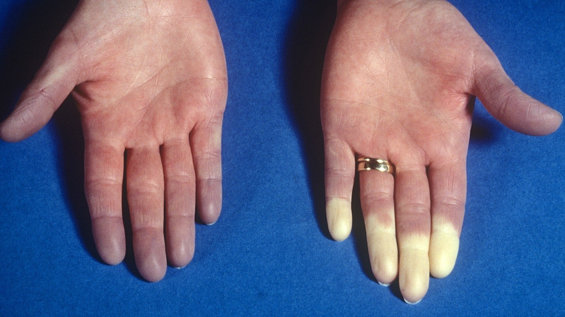 Reyno fenomeni tipik olarak 3 fazdan oluşan parmak uçlarındaki renk değişimleri ile kendini gösterir.