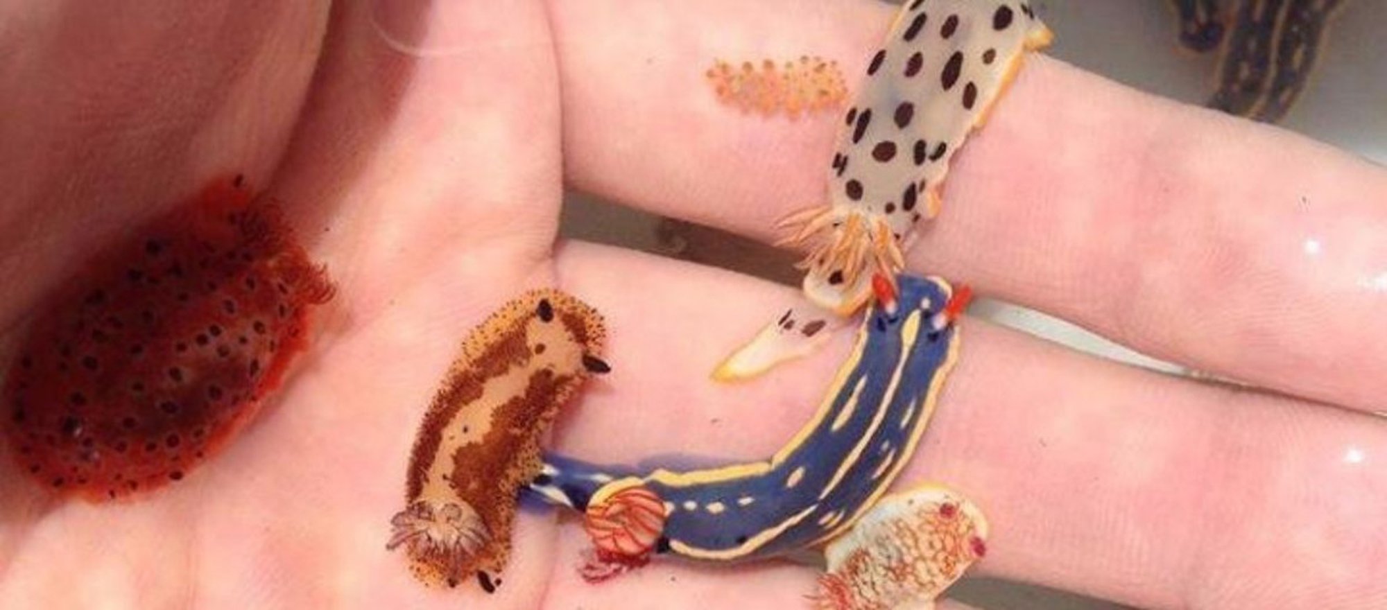 Bu ufacık hayvanlar, "deniz tavşanı" ya da "deniz sümüklüböceği" olarak bilinen, Nudibranchia (Çıplakbacaklılar) taksonomik grubundan hayvanlar! Deniz tavşanlarının birçoğu, bu fotoğrafta da görülebileceği gibi oldukça renkli ve ilginç görünümlü hayvanlardır. Evrimsel açıdan en basit yapılı omurgasız hayvanlardan birisi olan bu canlıların günümüzde 2300 türü bilinmektedir.