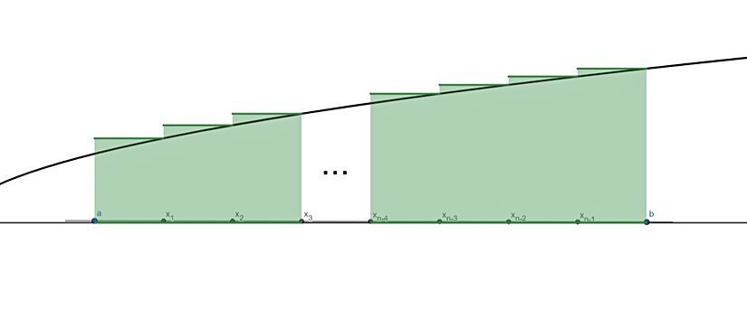İşte bu şekilde! İlk başta bu yöntem size dezavantajlı gelebilir. Ama aslında avantajlı olduğu kısımlar vardır. Mesela Riemann integrali kullanarak neredeyse her fonksiyonu toplama çevirip alan bulabilirsiniz.