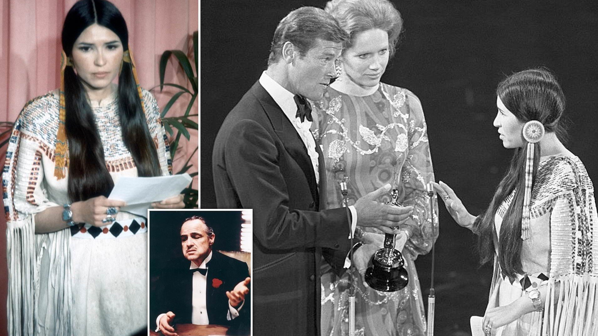 Tarih 27 Mart 1973, 45. Akademi Ödülleri gecesi... Sacheen Littlefeather, Oscar Ödülleri tarihindeki ilk politik konuşmayı gerçekleştirerek, farkında olmadan tarihe adını yazmış ve günümüzde bile devam eden bir akımı başlatmıştır; ancak karşılaştığı tepkilere "kibara yakın" demek bile mümkün değildir![4] Sahnede yuhalanmış, yüzüne karşı aşağılayıcı işaretler sergilenmiş, hatta az kalsın sahne arkasında oldukça ünlü bir oyuncunun saldırısına uğramış, ancak Akademi'den bu yıla kadar tek bir özür bile alamamıştır.[4] Peki böyle bir tepkiyle karşılaşmasına sebep olabilecek kadar önemli ne söylemiş olabilir?