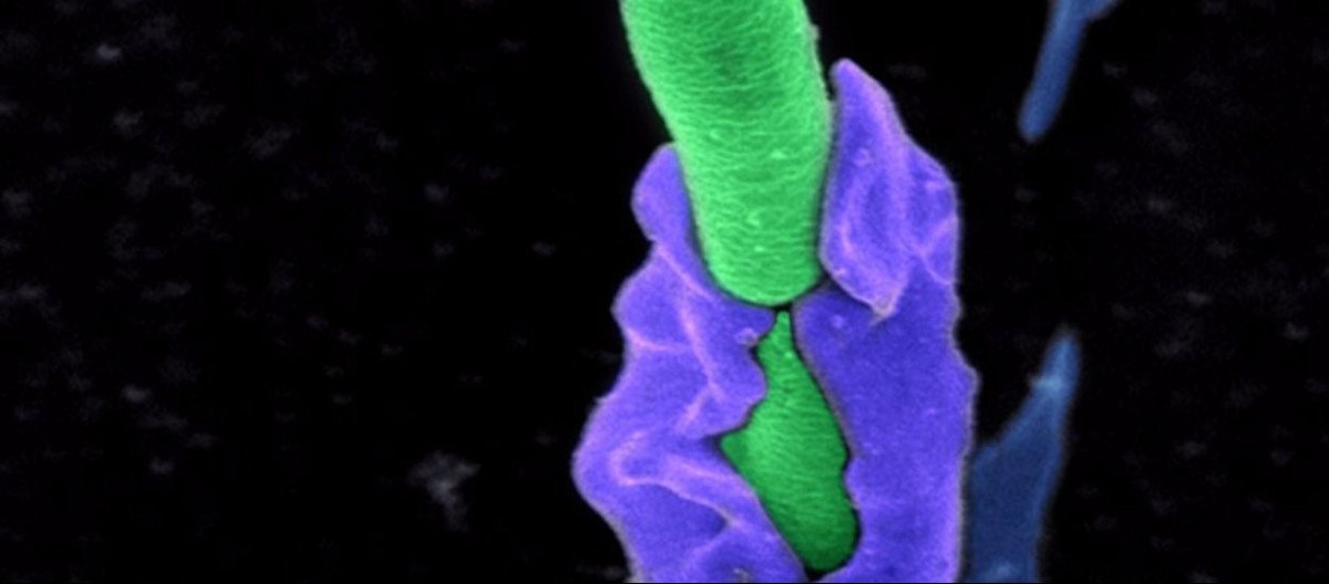 Neyse ki günümüzde bu bakterilere karşı hem çok etkili aşılar, hem de erken müdahale halinde işe yarayan antibiyotik ilaçlar bulunmaktadır. Görselde, bu bakterilerden biriyle mücadele eden bir savunma hücresi görülmektedir.