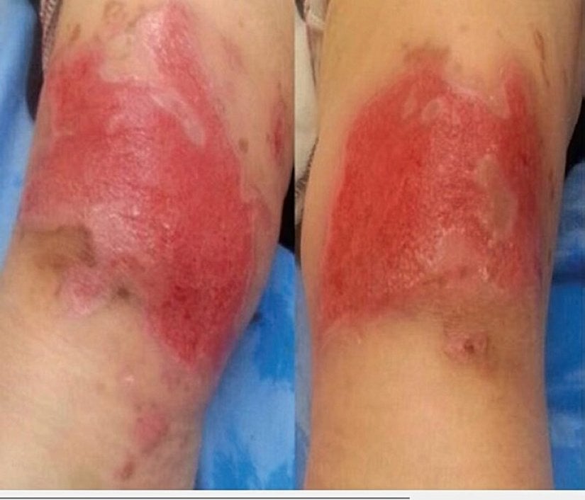 57 yaşında kadın hasta, iki dizinde birden ikinci derece kimyasal yanık lezyonları oluşmuştur. Hasta yanıkların oluşmasından bir gece önce diz ağrılarını gidermek amacıyla ezip parçaladığı sarımsakları iki dizine birden uygulayıp bandajla sıkıca kapatmıştır. 8 saat sonra çok şiddetli bir ağrıyla uyanmıştır. Oluşan yarayı görünce önce su ve sabunla yıkamıştır ve povidon iyot çözeltisi uygulamıştır. İyileşmesini umduğu yara iki günün sonunda daha da kötüleşince hastaneye başvurmuştur ve yanık ünitesine sevk edilmiştir. Hastanın yatışı yapılmıştır ve anca bir haftalık yoğun bir tedavinin ardından taburcu edilebilmiştir.[14]
