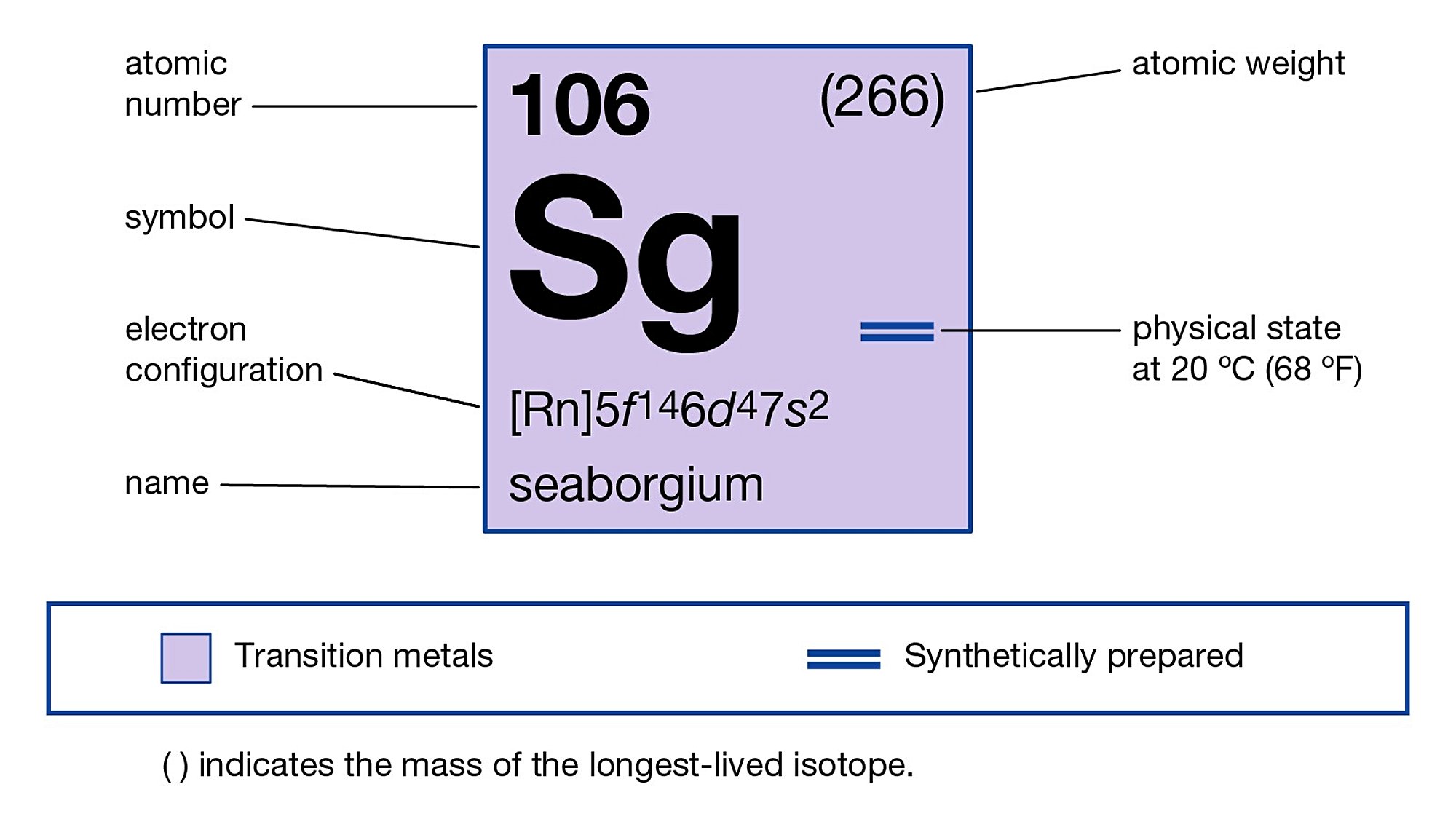 - Encyclopedia Britannica. Seaborgium | Chemical Element. Alındığı Tarih: 20 Şubat 2021. Alındığı Yer: Encyclopedia Britannica | Arşiv Bağlantısı