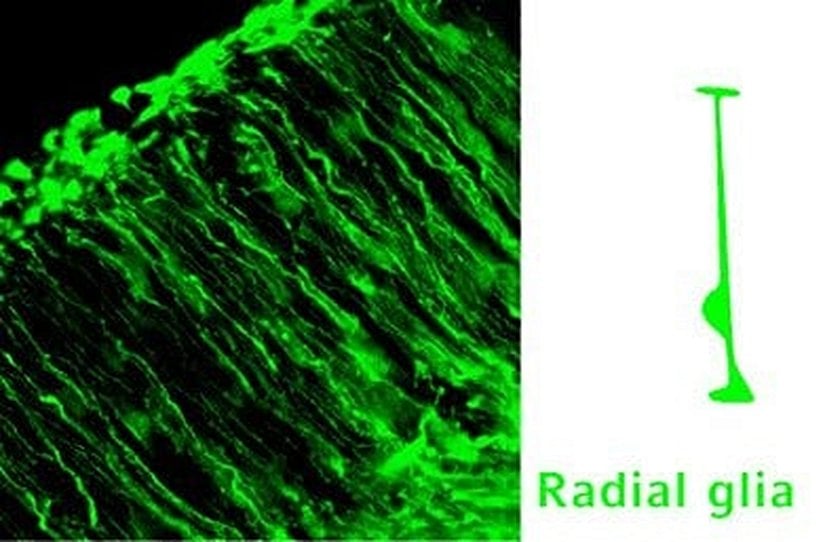 Göç eden nöronlara destek olan radyal gliyalara dair temsili bir görsel aşağıda verilmiştir: