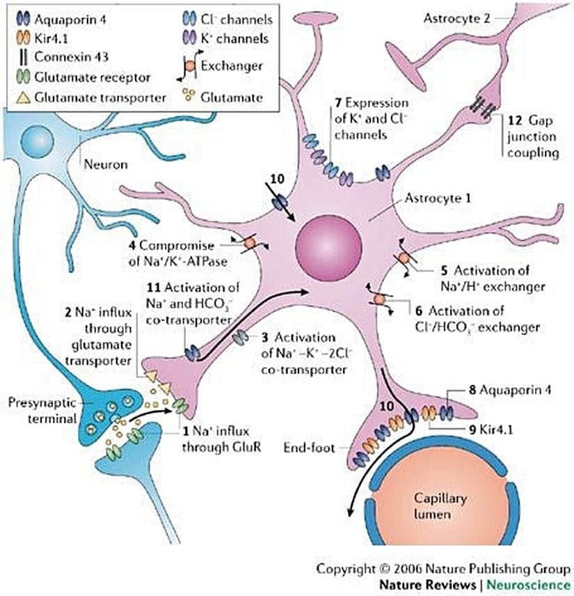 Uzun zamandır Merkezi Sinir Sistemi'nin "destek hücreleri" olarak düşünülen gliyalar, gerçekten de nöron sisteminin bütünlüğünü ve düzenini sağlamak için çok önemli görevler alırlar. Ancak yapılan son araştırmalar, gliyaların sadece destek ve koruma görevinin olmadığını, sinirsel iletim ve değerlendirmelerde de çok önemli görevleri olduğunu ortaya çıkarmıştır. Gliyaların bu görevlerine de yeri geldiğince değineceğiz.