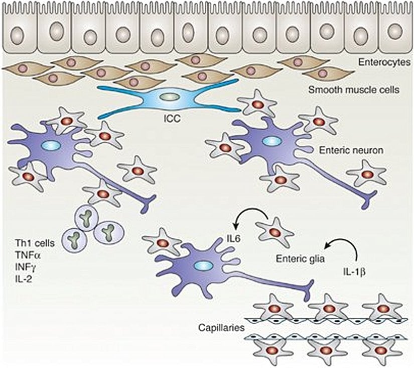 Enterik gliyaların Nature dergisindeki bir araştırmada yayınlanan temsili çizimleri şöyledir: