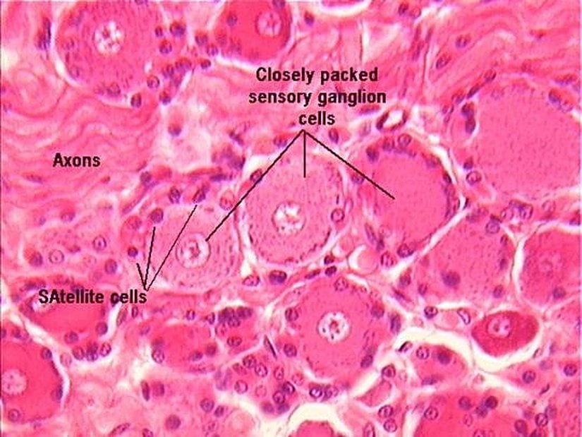 Aşağıda duyusal sinir hücrelerinin etrafında bulunan uydu hücreleri (satellite cells) görülmektedir: