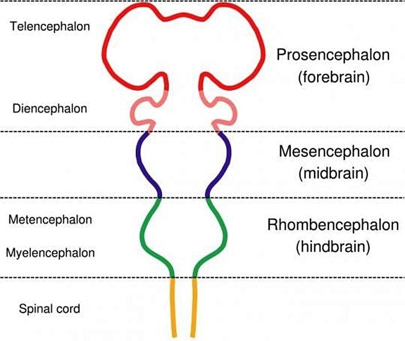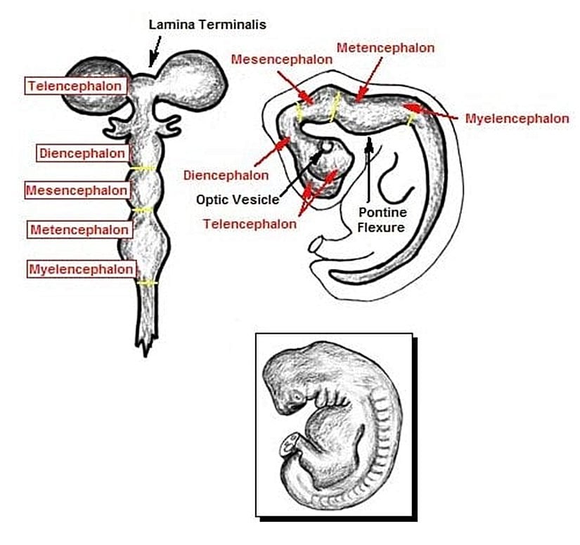 "Sefalon" aslında "kafa" demektir. Ancak beyin bölgeleri için de bu isim kullanılmaktadır. Beynimiz, embriyolojik dönemin 4. haftasında sadece bu 3 kısma sahiptir ve oldukça ilkeldir. Bu 3 kısım, istisnasız bütün memelilerde, farklı büyüklüklerde meydana gelir. Sonrasında, gelişimsel farklılaşmayla diğer kısımlar oluşur ve gelişir. İşte insanda da, 5. haftada ikinci bir gelişimsel değişim serisi gözlenir: