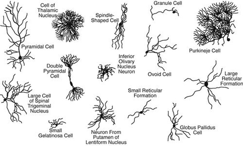 Günümüzde birçok farklı tipte nöron bilinmektedir. Aşağıdaki görsel bu çeşitliliği bizlere göstermektedir: