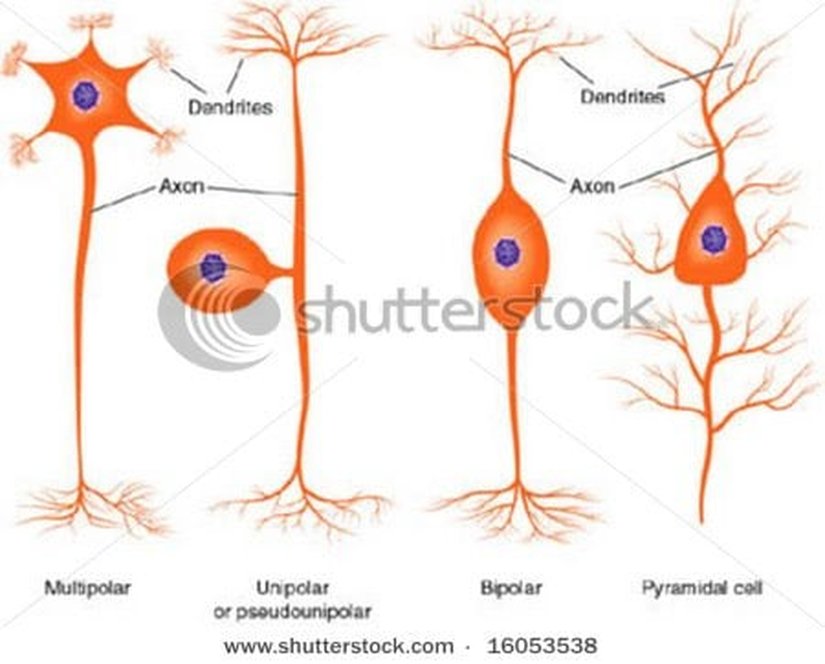Çok-Kutuplu Nöronlar (Multipolar): Somadan, yani nöron gövdesinden çıkan çok sayıda dendrite ve tek bir aksona sahiptirler. Örnek olarak omuriliğimizin ön boynuzunda bulunan motor nöronları, yani beyinden gelen bilgileri kaslara ileten nöronları verebiliriz.