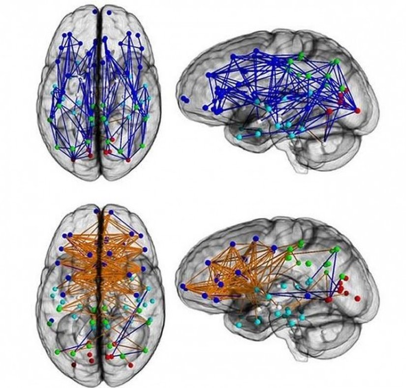 Hatta Profesör Ragini Verma önderliğindeki ekip, bu noktayı faydalı bir diyagramla açıkladı. Bir erkeğin beyni, önden arkaya giden ana bağlantılarıyla –tabii ki mavi renkte- gösteriliyordu. Kafatası yarımkürelerinin içindeki bağlantılar güçlüydü, fakat iki yarımküre arasındaki bağlantılar zayıftı. Aksine kadın beyni iki yarımküre arasında bir taraftan öteki tarafa giden güçlü bağlar şeklinde kalın bağlantılara sahipti. Verma şunları söyledi: