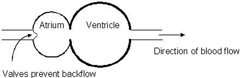 Görsel incelenirse, sol taraftaki kısım kulakçık (atrium), sağ taraftaki kısım ise karıncık (ventricle) dediğimiz yapıdır. Kulakçığa giren kan, önce karıncığa, oradan da vücuda pompalanır. Genel olarak karıncıktan pompalanan kan, akciğerlerde veya solungaçlarda temizlenmektedir.