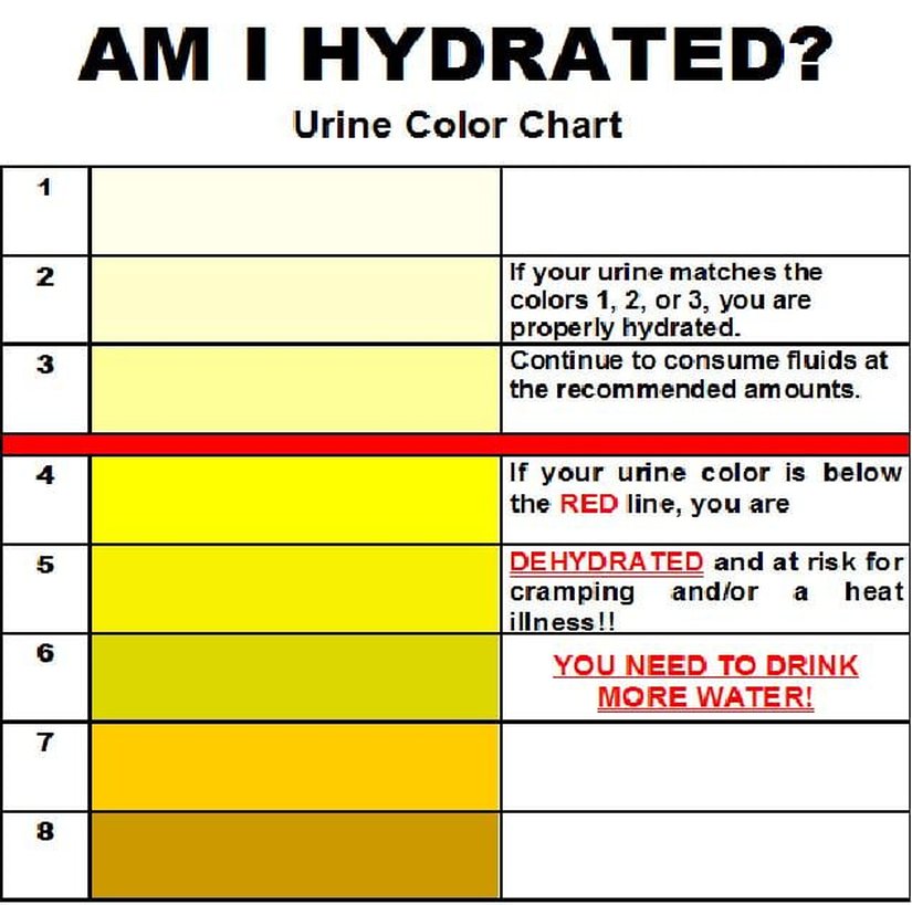 Eğer ki idrar renginiz 1, 2 veya 3 olarak numaralandırılmış renklerden biriyse, yeterli miktarda su tüketiyorsunuz demektir. Bu şekilde su içmeye devam ediniz ve miktarı azaltmayınız. Eğer ki idrar renginiz, kırmızı çizginin altındaki renklerden biriyse (4-8 arası), o zaman az su tüketiyorsunuz demektir ve acilen daha fazla su içmelisiniz. Günde 6-7 büyük bardak su içerek boşaltım sisteminize destek olabilirsiniz. Eğer ki idrar renginiz 8 numarayla gösterilenden bile koyuysa (kahverengi veya siyah renkteyse), acilen bir doktora görünmeniz gerekmektedir. Bu uyarılarımızı dikkate almanızı tavsiye ederiz.